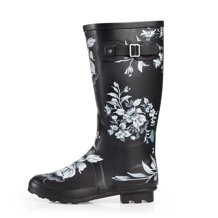 Sturdy boots made of natural rubber with a cotton lining inside and slip resistant soles.