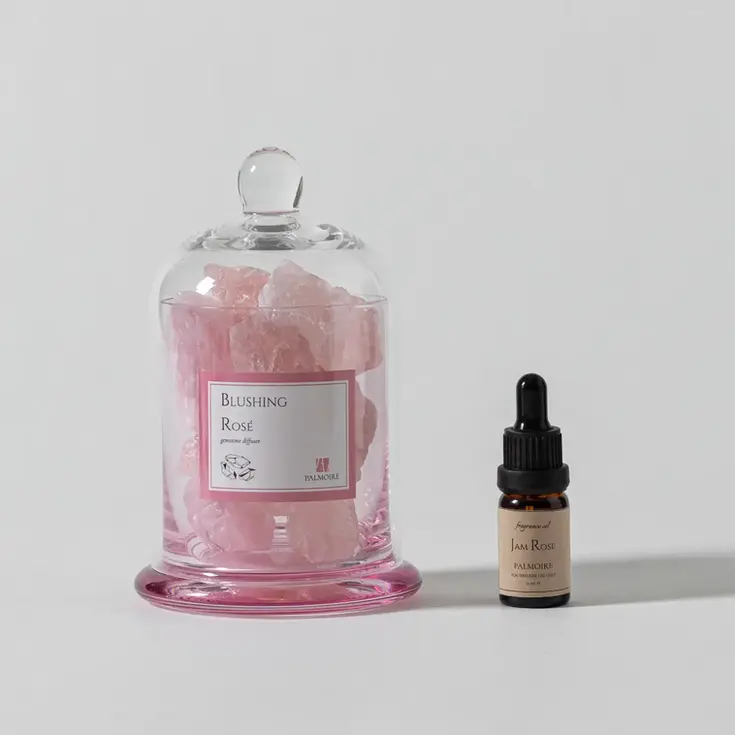 The Blushing Rosé Gemstone Diffuser is paired with Jam Rose fragrance oil to create a bouquet of captivating florals to leave your space freshly scented. Top Notes: pear, nectarine Middle Notes: rose, jasmine Base Notes: cedar, white musk. Gemstone: Rose Quartz Known as the “love stone”. It attracts love and increases respect and trust. This is a calming and healing gemstone that can assist with emotional stress and tension.